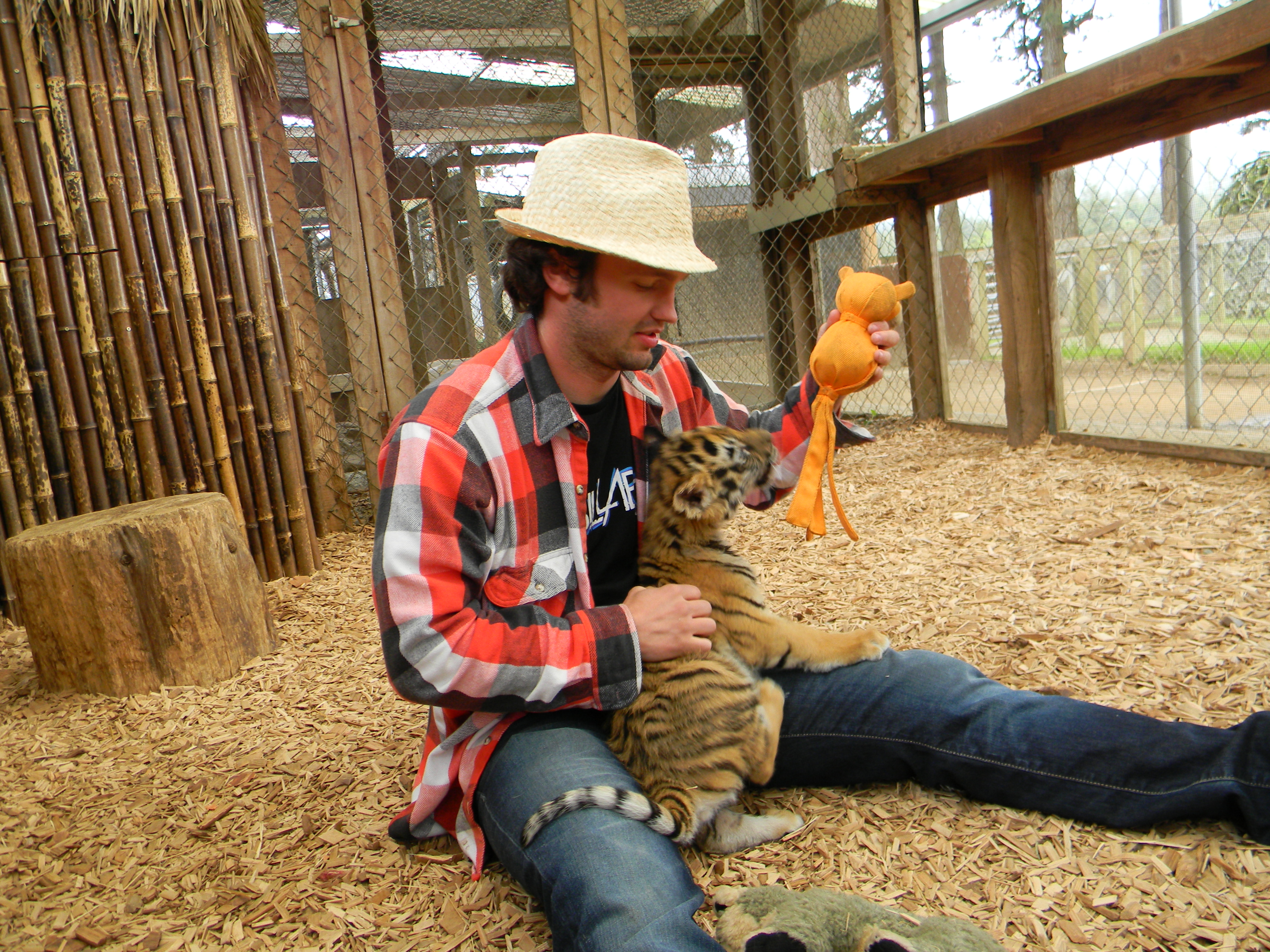 Have you ever wanted to hold a baby tiger, feed a baby leopard, maybe play with a baby lion? Who doesn’t want that? West Coast Game Park Safari offers interacting up close and personal with baby exotic animals and so much more! It is probably my favorite zoo, although I suppose a more accurate term is petting zoo. Let’s be honest, who doesn’t love a petting zoo, especially when the animals you pet are not your typical petting zoo animals! Sure they have pygmy mommy and baby goats, deer, donkeys, and other typical petting zoo animals, but they also have exotic animals. The cages are made so that you can safely view the animals up close. They also allow you to play with the baby exotic animals at no extra charge. When we were there we played with three baby tigers and fed and held a baby leopard. My sister-in-law went a year after we did, she got to play with a baby bear. The baby animals you pet change, one time it was a baby lion. The day we went it was a dreary day, typical for Oregon though. When we got there we weren’t sure what to think. There was a huge sign telling us to park here, but to be honest the place looked like a hole in the wall place. Danny and I looked at the place and the cloudy skies with drizzly rain and almost left. We figured we might as well see what an exotic petting zoo is, best decision we made that trip.